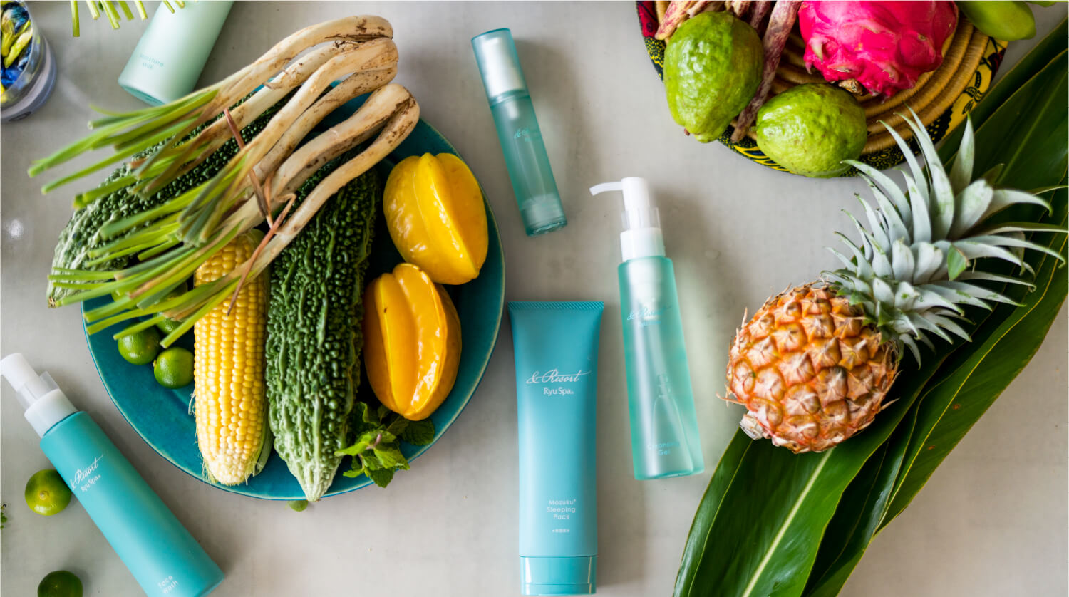 対策していても日常的に浴びてしまう紫外線。「&Resort」シリーズは、沖縄の先人の知恵から学んだ紫外線ケアを前提に、久米島海洋深層水をはじめとする沖縄の自然素材をバランスよく配合しています。未来の肌を守るため、沖縄の自然の力で紫外線に負けないつややかな肌を育んでください。